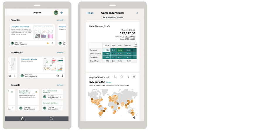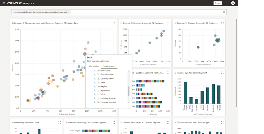 Oracle Analytics can be launched directly from any browser on any device. Access and transform all necessary data sets in preparation for analysis, and share data sets, projects, or presentations with others. Responsive web design, including gestural interfaces, provides an optimal display on mobile devices.