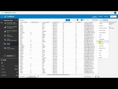 Whether importing data from files or connecting to existing sources, the Quality Insights capability accelerates the preparation of data for analysis. Using the power of the semantic profiler in Oracle Analytics, Quality Insights provides a visual representation of your data's quality, helping to rapidly identify issues. These indicators are based on null values, data type inconsistencies, and semantic type classifications. Each column in your data has a contextual visual to show the distribution of the represented data. Make inline edits to quickly address any issues, rename columns, and use the scrollable mini map to easily traverse long lists.
