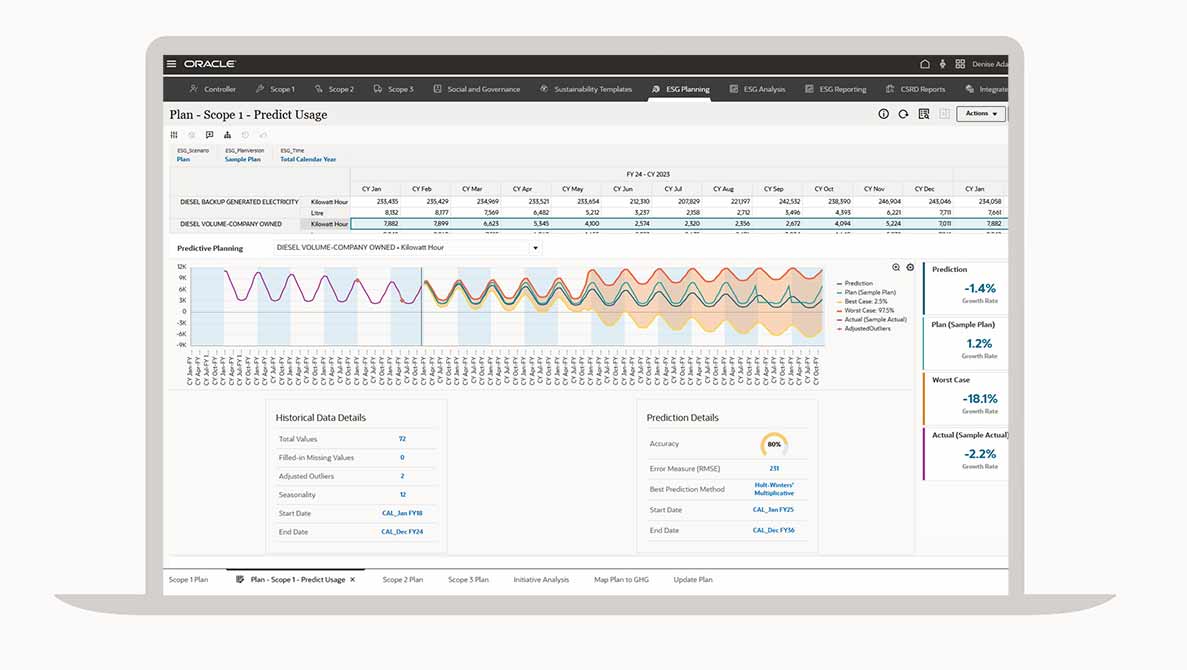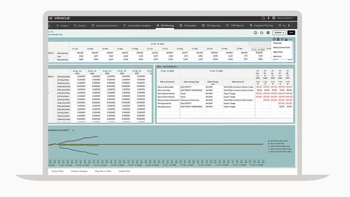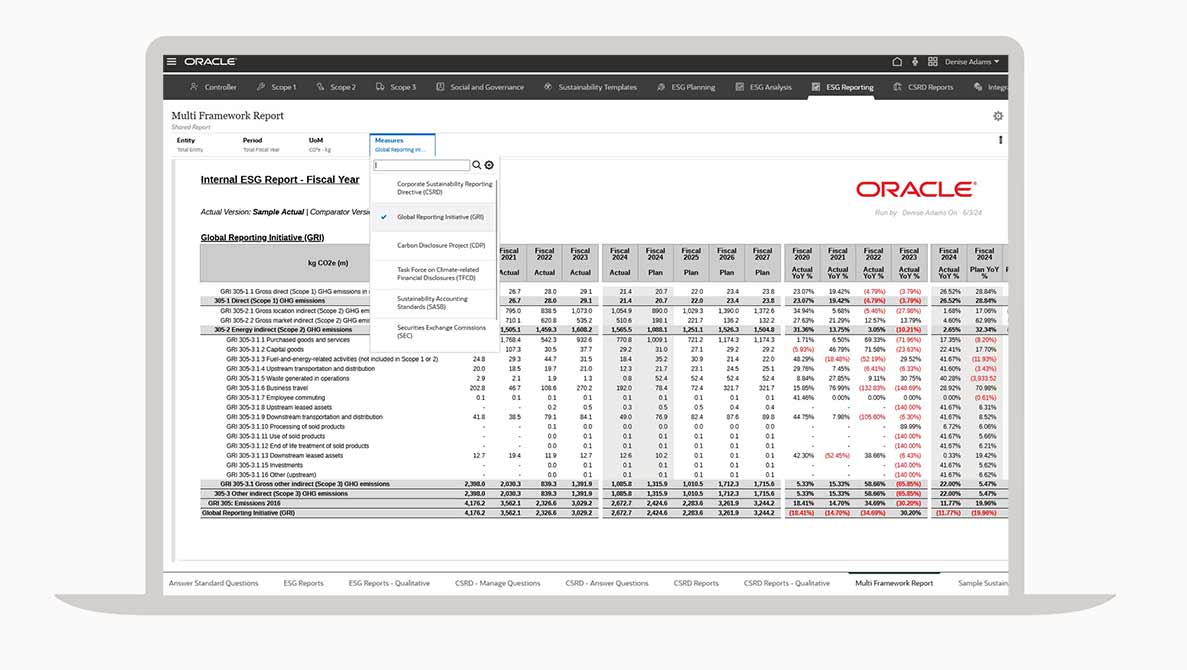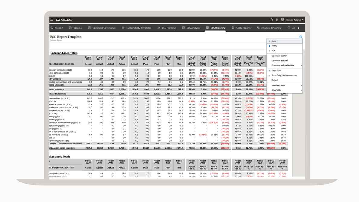 Changing rules and regulations requires flexible reporting methods. Oracle Cloud EPM allows adaptable reporting across CSRD, TCFD, IFRS, CDP, and all other frameworks that can easily be changed.