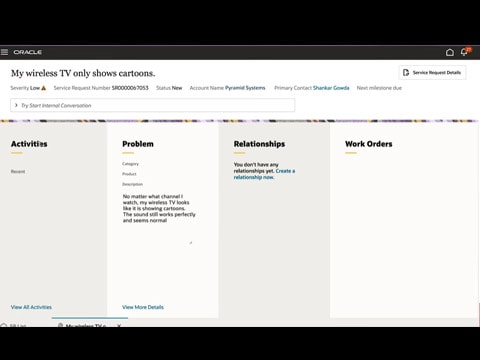| Service request and case management | Service request summarization* | Can automatically draft concise summaries of service request details directly within the Oracle Service Center user interface using generative AI. |