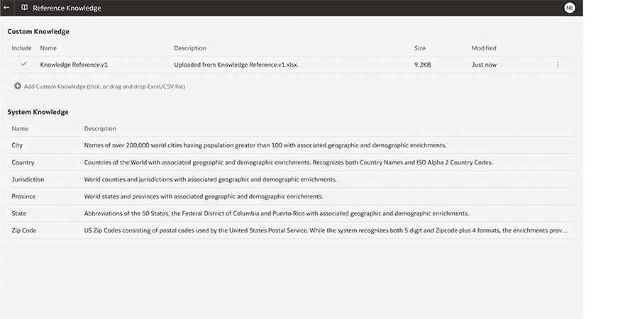 Data sets can be augmented with additional data, attributes, or transformations. The built-in reference knowledge includes: