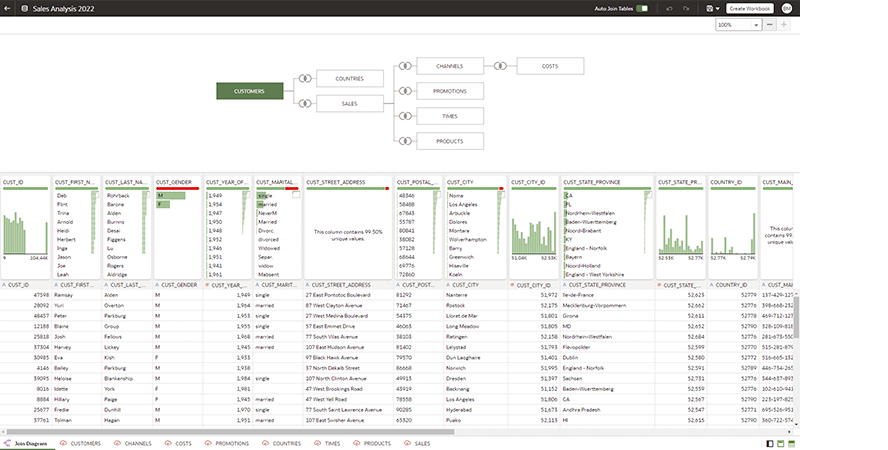 Users can directly join two or more tables and control the relationship (e.g., inner or outer joins) through self-service. Easily share self-service data models with colleagues.