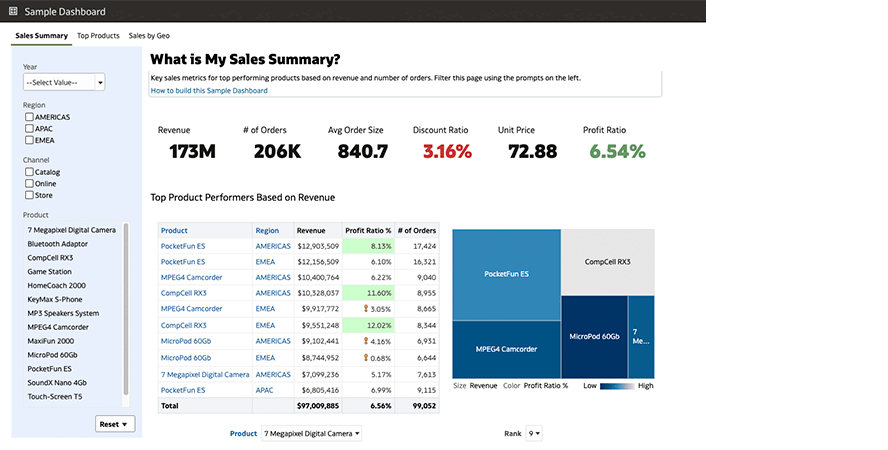 Data visualization is a fundamental component of every analytics system. Without visualizations, it is difficult to quickly consume dense information or large data sets. Highly visual, interactive analytics dashboards provide graphics to explore relationships between variables, identify patterns, trends, outliers, and variances. Oracle Analytics provides an easy-to-use, click-and-drag interface that allows any user to blend data sets, explore their data, and construct visual stories for stakeholders—without the need for separate tools.