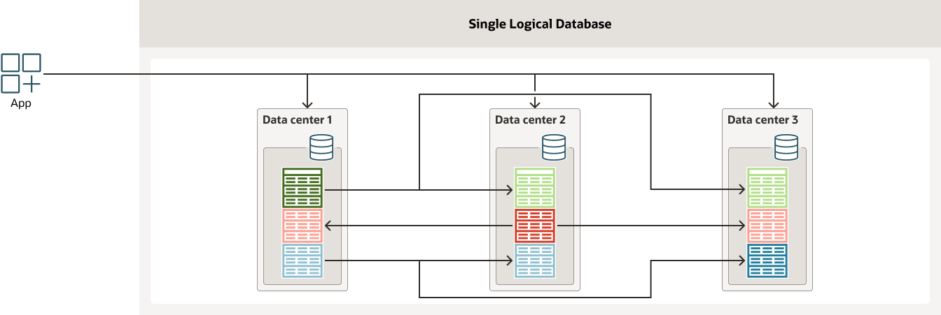 The database is divided into multiple physically independent shards, which can all be placed in one OCI region or different regions.