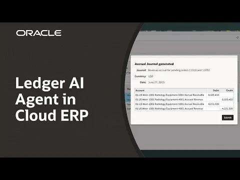 The foundation begins with Oracle’s document IO agent, which automates data ingestion and document creation for billing, accounting, and recordkeeping. This includes many processes, such as expense receipt itemization, supplier invoice processing, bank reconciliations, and journal entry creation. The generative AI component lets the agent process data from various formats and languages so it can handle everyday realities, like a new trading partner sending in an order in an entirely different format. The agent continuously improves, so it increases data accuracy and quality through automation with little or no additional configuration needed. This higher-level capability can be applied to increase productivity and improve data completeness, accuracy, and timeliness.