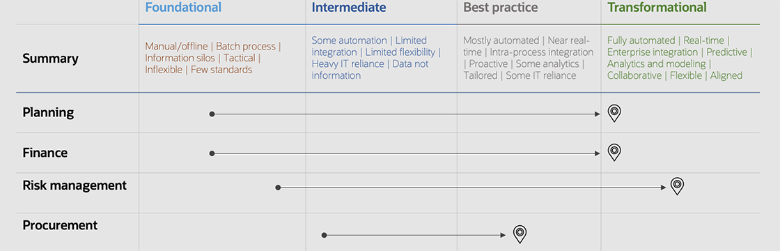 Oracle Fusion Cloud ERP fully integrates financial management, procurement, performance management, and supply chain and manufacturing on one platform to give holistic insights across the entire business with real-time data. By automating processes that used to be manual, Oracle Cloud ERP helps finance teams respond quickly to fast-changing business conditions. It also supports collaboration within the application suite for instant data sharing and problem solving and offers built-in, standardized best practices that encourage process efficiency. With Oracle Cloud ERP, your IT team is no longer focused on hardware support and costly upgrade cycles and instead can focus on helping the organization get the most out of your capabilities. Quarterly updates deliver the latest innovations so you’ll never have to worry about software obsolescence or enduring another disruptive upgrade. For companies working on their ERP replacement strategy, Oracle Business Value Services can help them define and articulate the business case. Oracle also offers financing options that can help companies manage the upfront project costs.