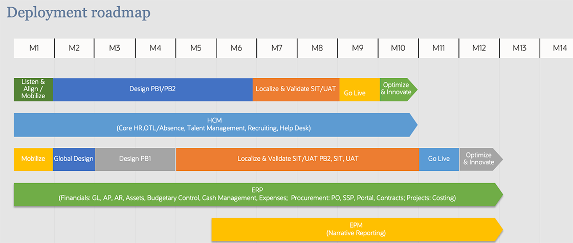 Set realistic timelines for implementation, considering the complexities and potential challenges. Map out the rollout phases, such as by geographies, business functions, or other factors. In the case of cloud applications, the implementation time is often shorter than conventional, on-premises systems required, but being realistic about the timing and the required change management is critical to establishing credibility and managing expectations.