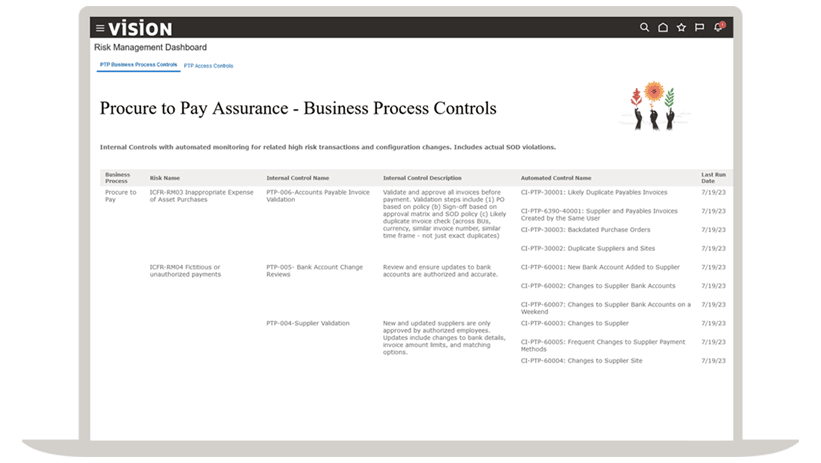Monitor user access and activity across procure-to-pay to help ensure process integrity. Enforce separation of duties and analyze all purchase orders, invoices, and payments.