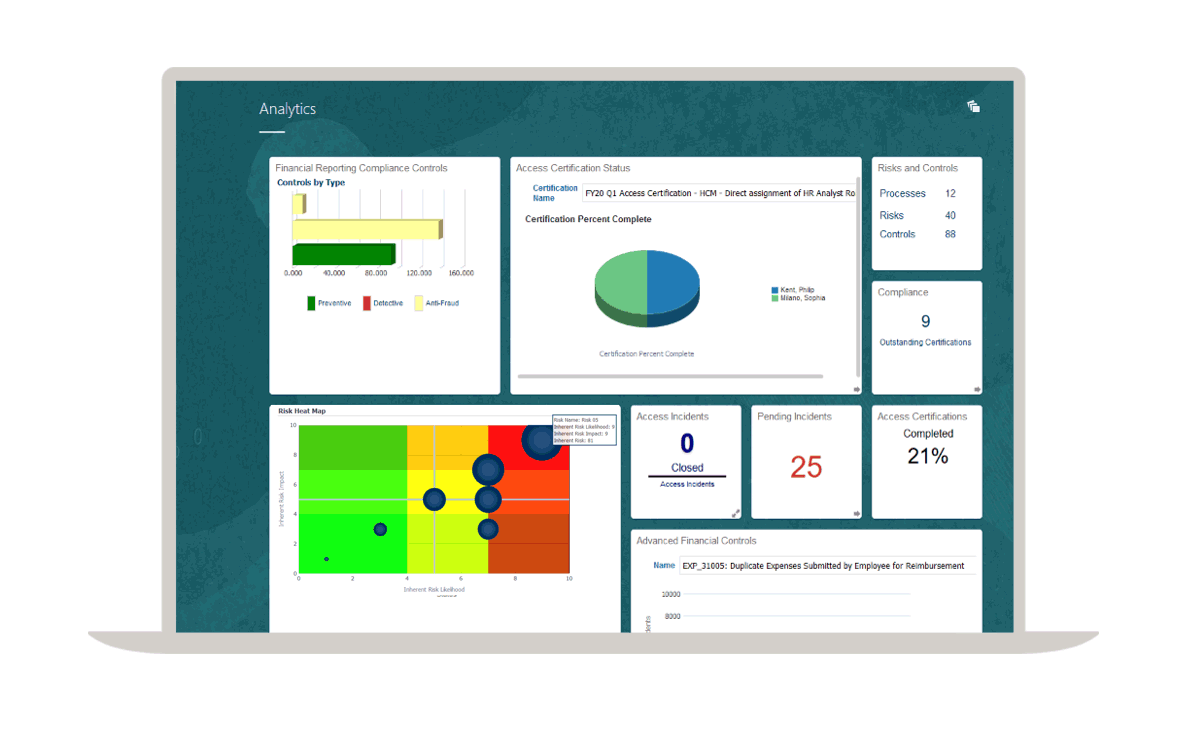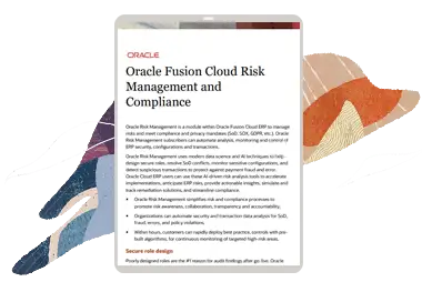 Proactively protect your enterprise to build trust and resilience amid constant change and disruption. Oracle Fusion Cloud Risk Management and Compliance is a security and audit solution that controls user access to your Oracle Cloud ERP financial data, monitors user activity, and makes it easier to meet compliance regulations through automation.