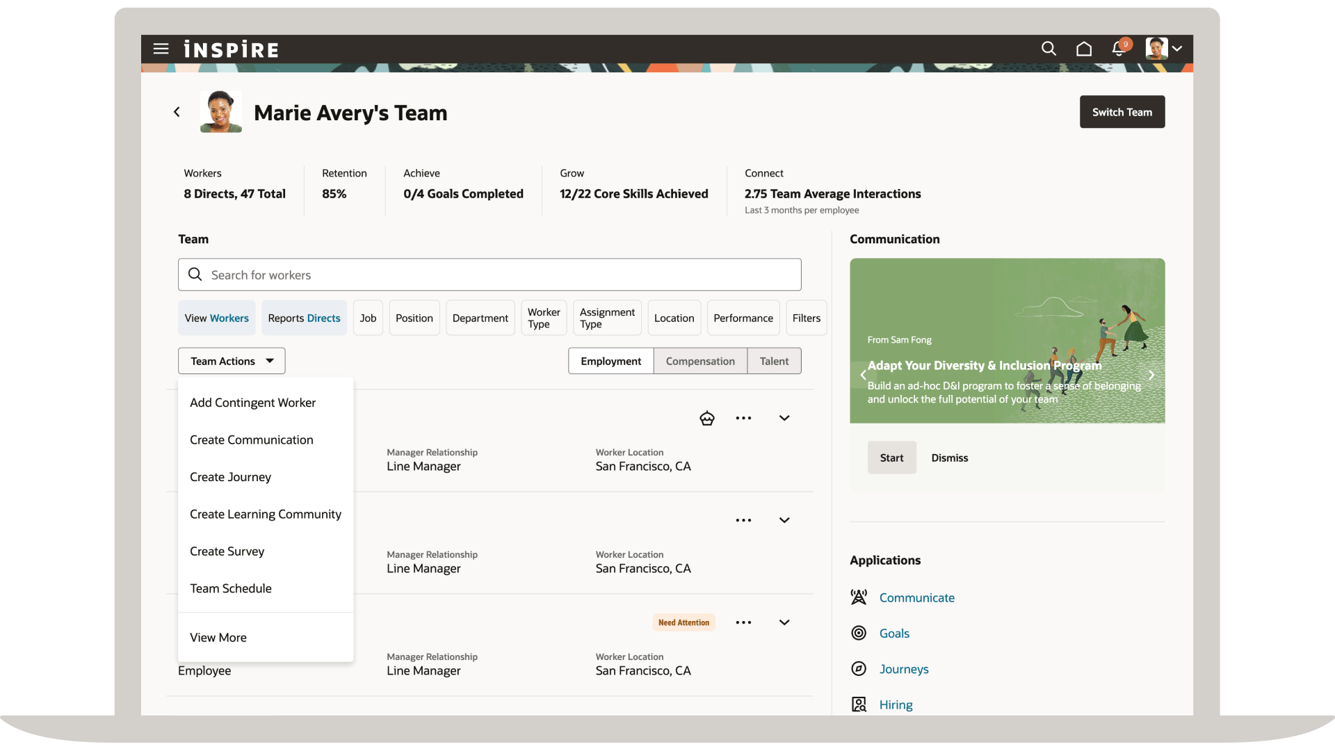 Surface tools and actions that drive better productivity, development, and engagement for your team.