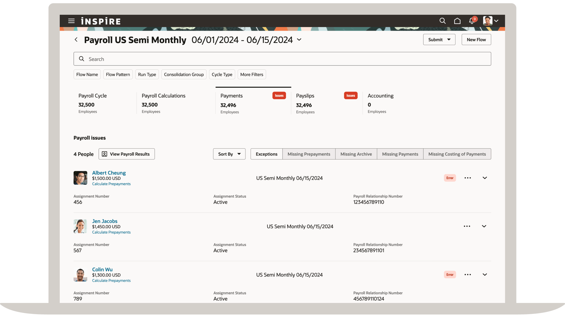 See a consolidated view of the overall payroll status and system-identified issues within a payroll cycle.