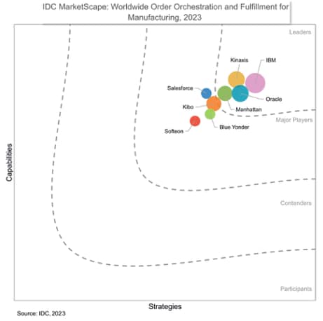 Source: "IDC MarketScape: Worldwide Order Orchestration and Fulfillment for Manufacturing 2023 Vendor Assessment," by Roderick Gaines, December, 2023, IDC #US49615723e
