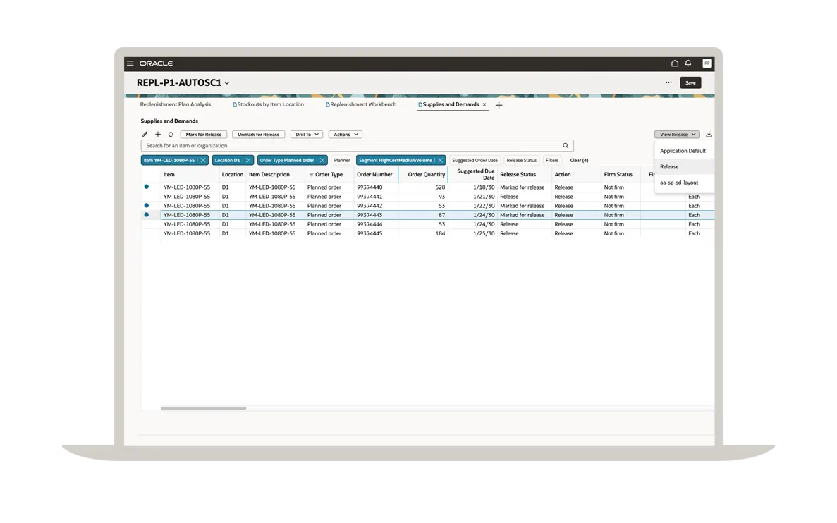 When you're satisfied with the results, you can review and release the planned replenishment orders.
