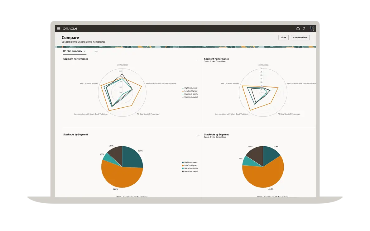 When you run a plan, you can see the effectiveness of your replenishment planning segments at a glance. Compare stockouts, fill rates, and costs to decide which segments need to be adjusted.