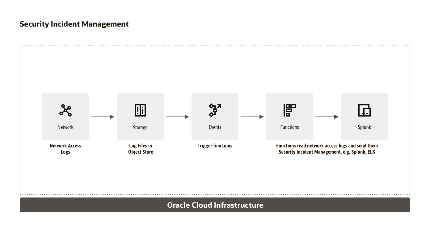 Use object storage for network flow and audit logs. Trigger Functions to parse and transfer new logs to your SIM system.