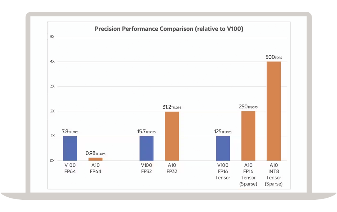 OCI offers the highest value and performance for bare metal and virtual machine compute instances powered by NVIDIA Blackwell GPUs, H200 Tensor Core GPUs, H100 Tensor Core GPUs, L40S GPUs, A100 Tensor Core GPUs, A10 Tensor Core GPUs, and older-generation NVIDIA GPUs.