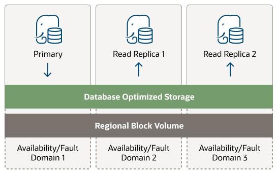 OCI Database with PostgreSQL is a top-tier managed service that frees up your team from routine tasks, such as patching and backups. Its standout feature is OCI Database Optimized Storage, which boosts system resilience and performance. Additionally, this architecture allows for independent scalability of compute and storage. OCI Database with PostgreSQL also provides enhanced data security with end-to-end encryption.