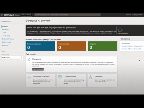 Discover the power of generative AI models equipped with advanced language comprehension for building the next generation of enterprise applications. Oracle Cloud Infrastructure (OCI) Generative AI is a fully managed service for seamlessly integrating these versatile language models into a wide range of use cases, including writing assistance, summarization, analysis, and chat.