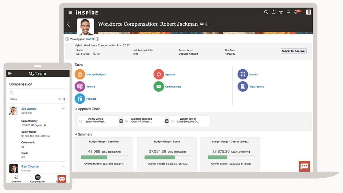 Make decisions about compensation plans using connected, relevant employee data from Oracle Cloud HCM.
