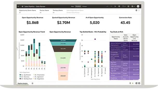 Oracle Fusion CX Analytics helps organizations achieve their full revenue potential by combining sales, marketing, and service data in a unified analytics solution.
