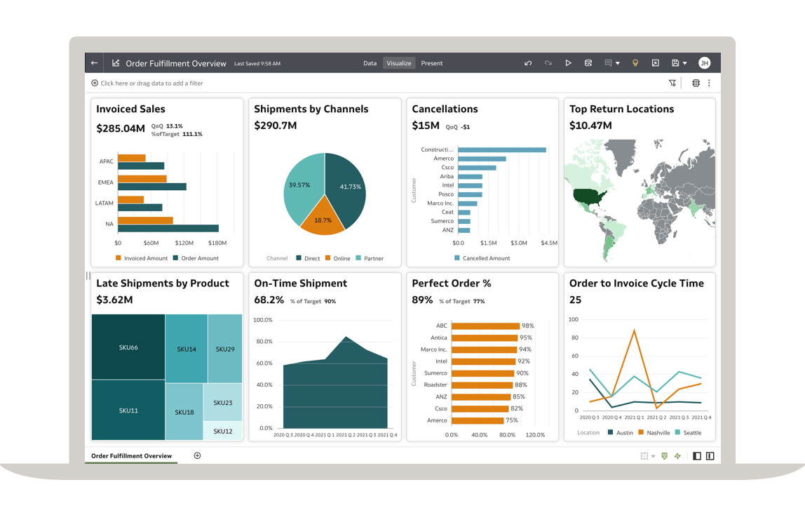 Oracle Fusion Supply Chain Management (SCM) Analytics is a prebuilt cloud native solution for Oracle Cloud SCM that helps supply chain professionals uncover underlying drivers to improve efficiency, reduce costs, and ensure customer satisfaction.
