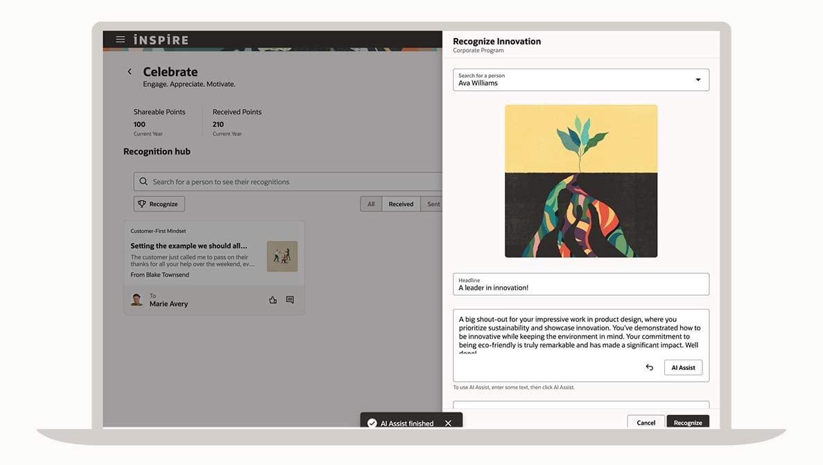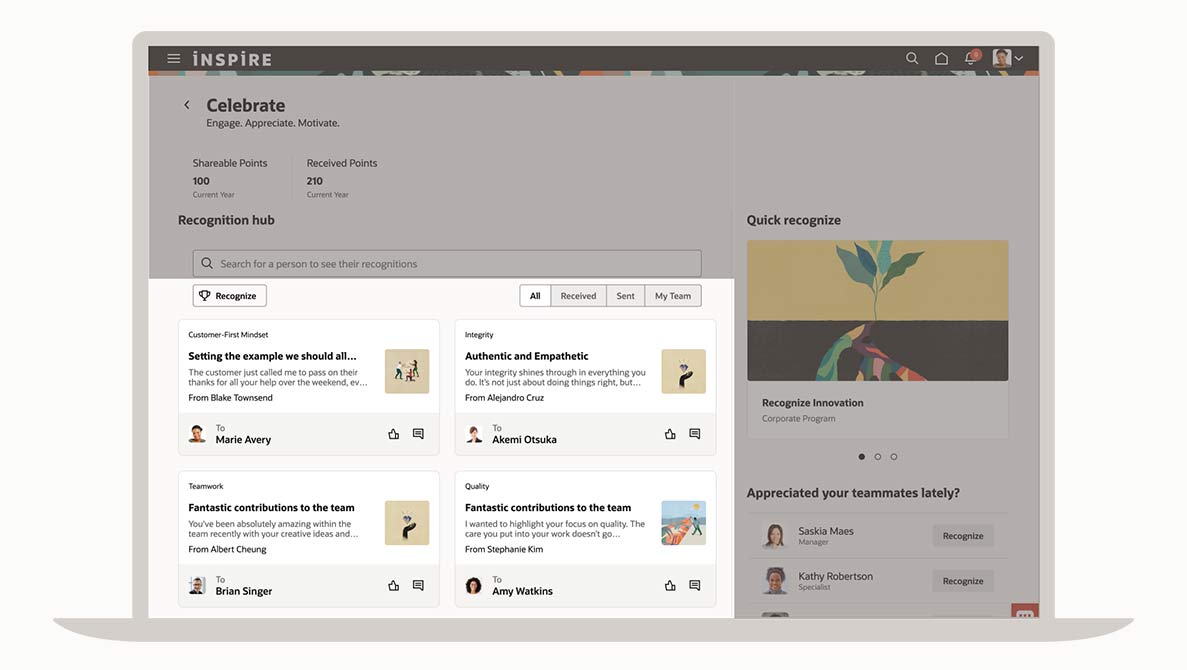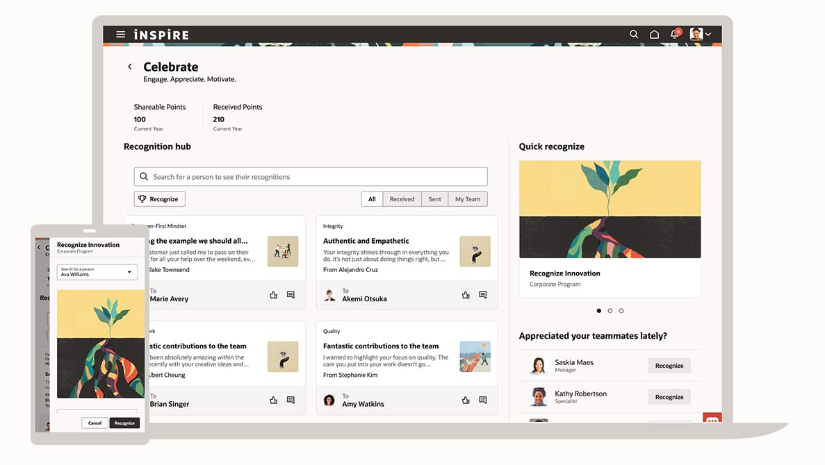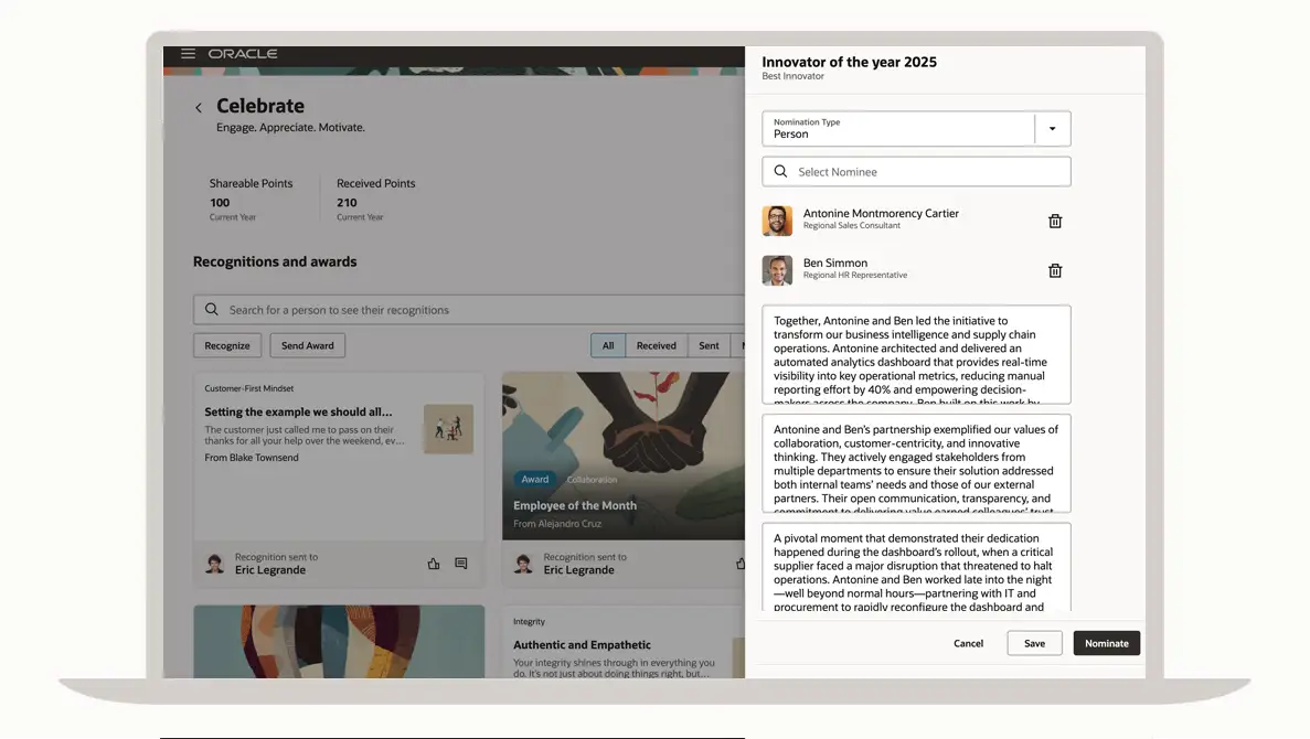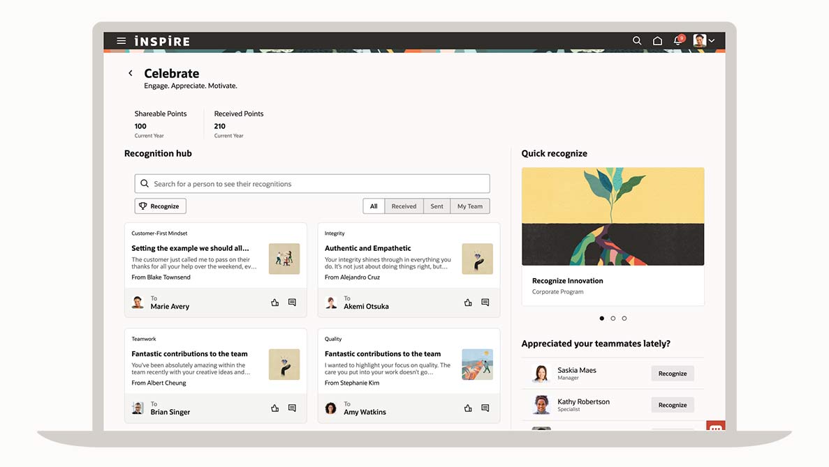 Oracle Celebrate, part of the Oracle ME employee experience platform, delivers tailored, in-the-moment peer-to-peer recognition and holistic engagement insights to bring unsung heroes to the forefront and drive unique cultural values.