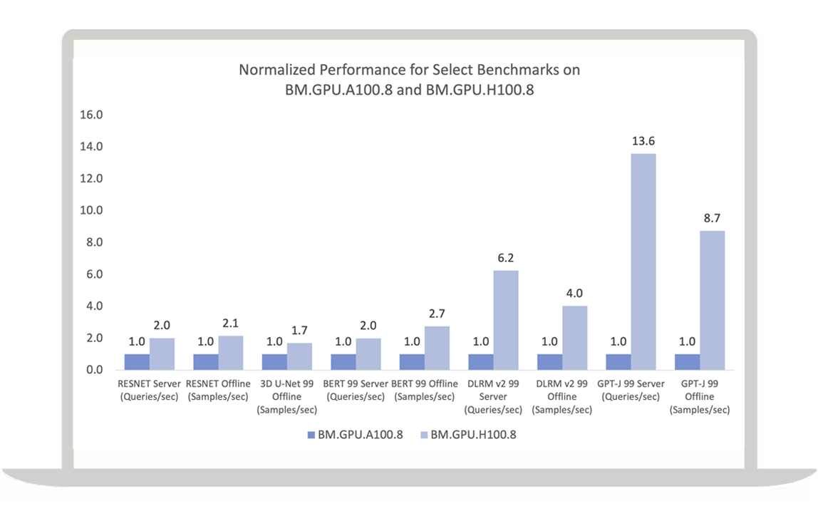 OCI מציע את הערך והביצועים הגבוהים ביותר עבור מופעי מחשוב של מתכת חשופה ומחשב וירטואלי המופעלים באמצעות NVIDIA H100 Tensor Core GPUs, L40S GPUs, A100 Tensor Core GPUs, A10 Tensor Core GPU, ומופעי GPU של NVIDIA מהדור הישן יותר. OCI מתכננת להציע מופעים עם NVIDIA H200 ומופעי GPU של Blackwell.