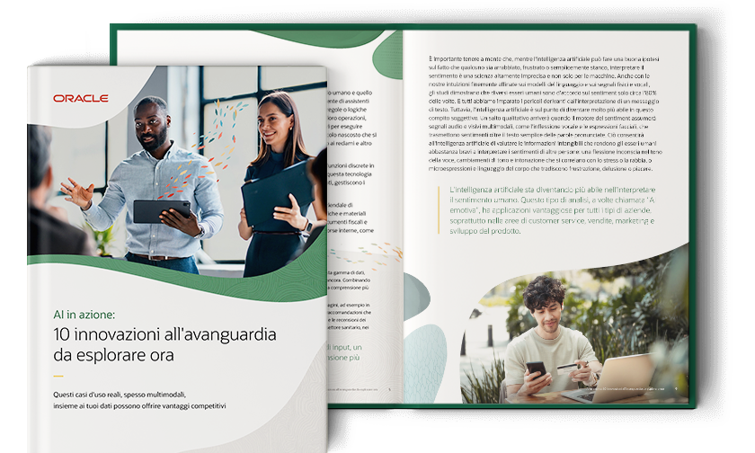 Analisi delle immagini. Piattaforme di upselling e sicurezza basate sull'intelligenza artificiale. Sentiment e AI ambientale. Qualunque sia la tua azienda, questi e altri strumenti AI possono essere catalizzatori di innovazione. Grazie ai rapidi progressi nell'intelligenza artificiale generativa e nelle tecnologie complementari come la visione artificiale, se riesci a immaginare un caso d'uso, è probabile che tu possa renderlo realtà.