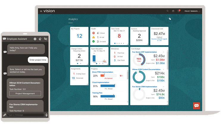 Oracle Project Managementは、プロジェクトを時間どおりに予算内で管理することを目的とした、単一のソースとなります。モバイル機能とソーシャル機能を備えた機械学習に基づいて構築されているため、プロジェクトのタスクとリソースを調整できます。Project Managementは、財務、HR、運用など、企業全体の活動を管理しながら、プロジェクトの計画、予算編成、および予測業務を改善します。