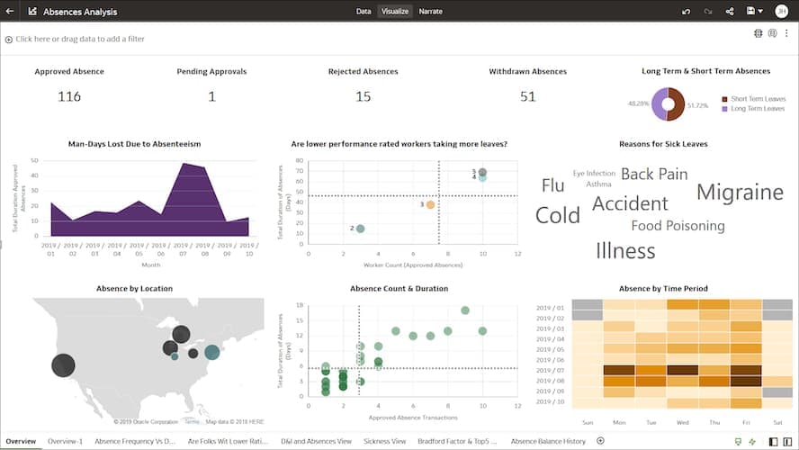 以下は、Oracle Cloud HCMデータを使用して開始できる、利用可能なデフォルトのKPIのサンプル・リストです。