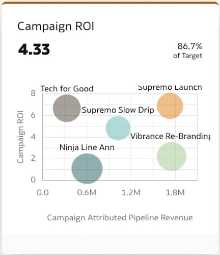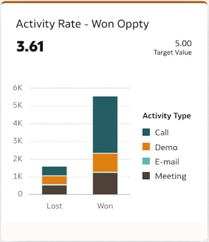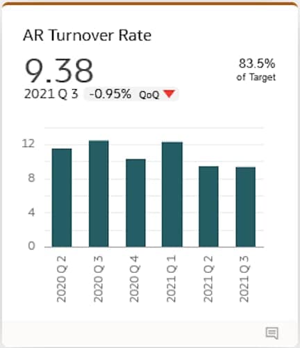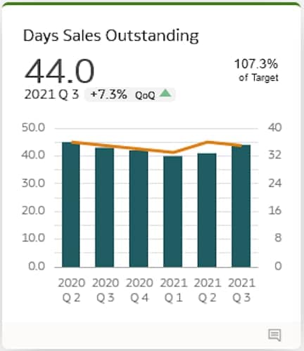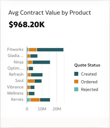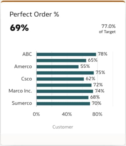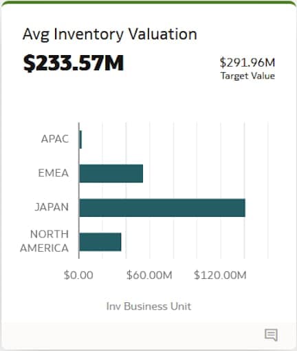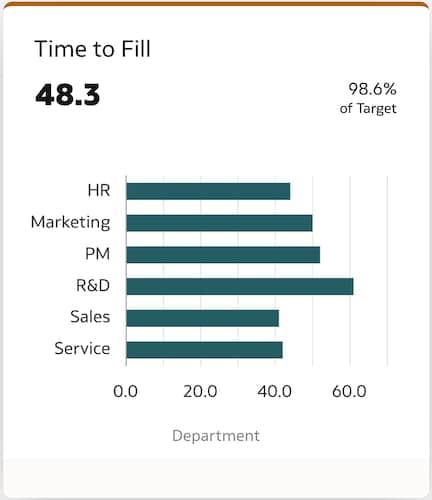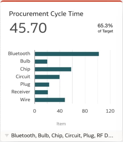 Oracle Fusion Analyticsには、チームが特定の組織目標に対してパフォーマンスを監視できるようにする、ベストプラクティスの主要業績指標(KPI)のライブラリが含まれています。
