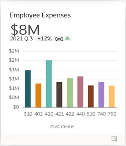 Oracle Fusion Analyticsは、オラクル全体にわたり一貫した直感的なユーザー・エクスペリエンスを提供し、KPIを中心にビジネス・パフォーマンスを簡単に監視できます。QBRミーティングや、特定の事業部門、コスト・センター、製品部門のパフォーマンスのモニタリング例など、ビジネス・ニーズに基づいてKPIのパーソナライズされたダッシュボードを作成します。KPIライブラリからデフォルトのKPIまたはカスタムのKPIを選択し、ニーズに合わせてカスタマイズします。