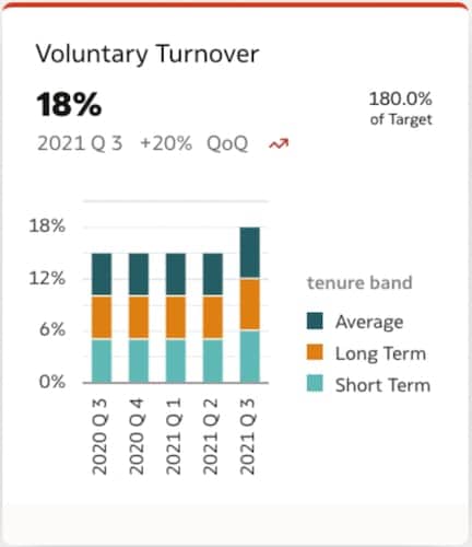 以下は、Oracle Cloud HCMデータを使用して開始できる、利用可能なデフォルトのKPIのサンプル・リストです。