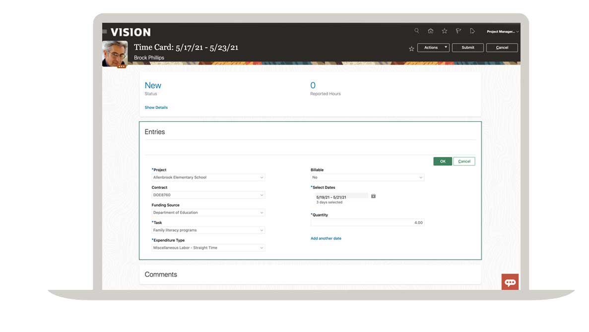 プロジェクト、補助金、コスト・センターなど、組織にとって重要な項目に照らして労働を追跡します。