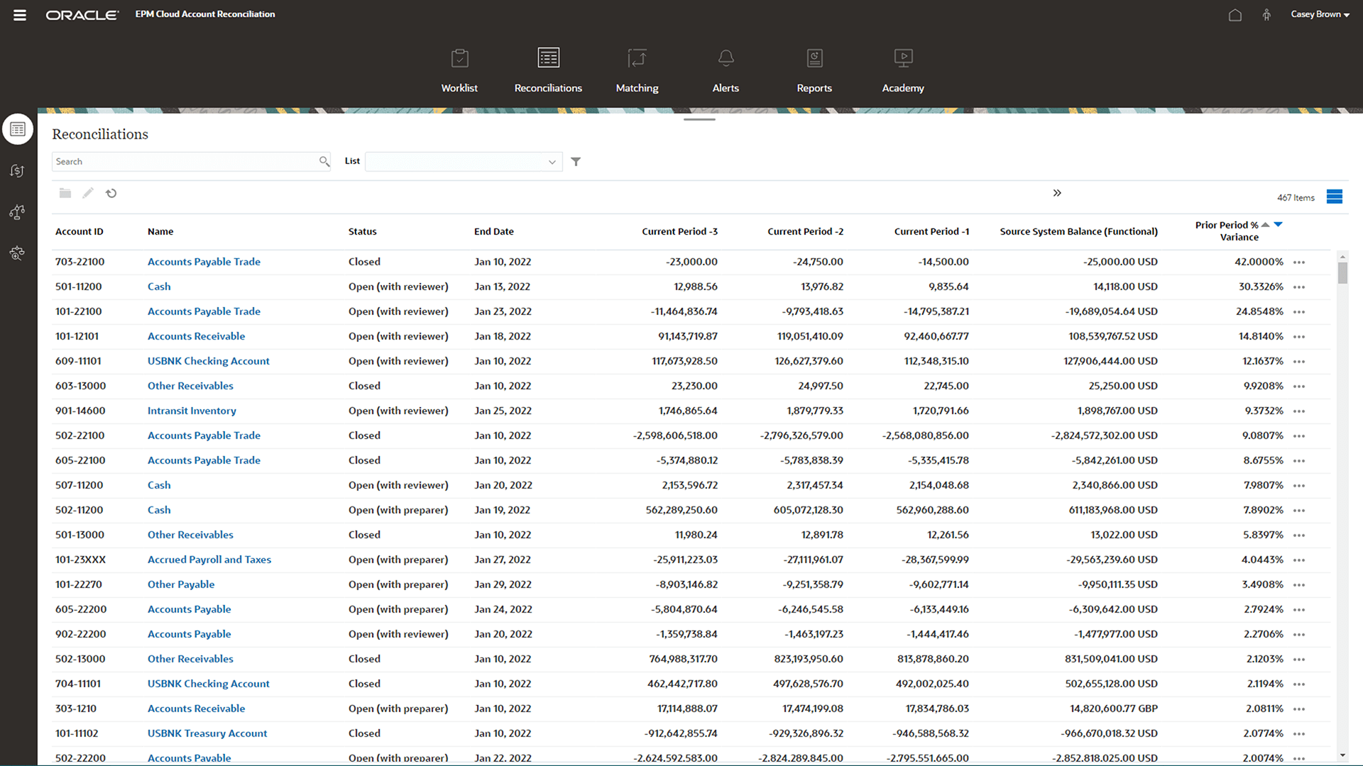 Account Reconciliationはスタンドアロンのソリューションではなく、Financial Consolidation and CloseおよびNarrative Reportingを含むOracle Fusion Cloud Enterprise Performance Management (EPM)と完全に統合されており、完全なエンドツーエンドの財務決算処理を実現します。