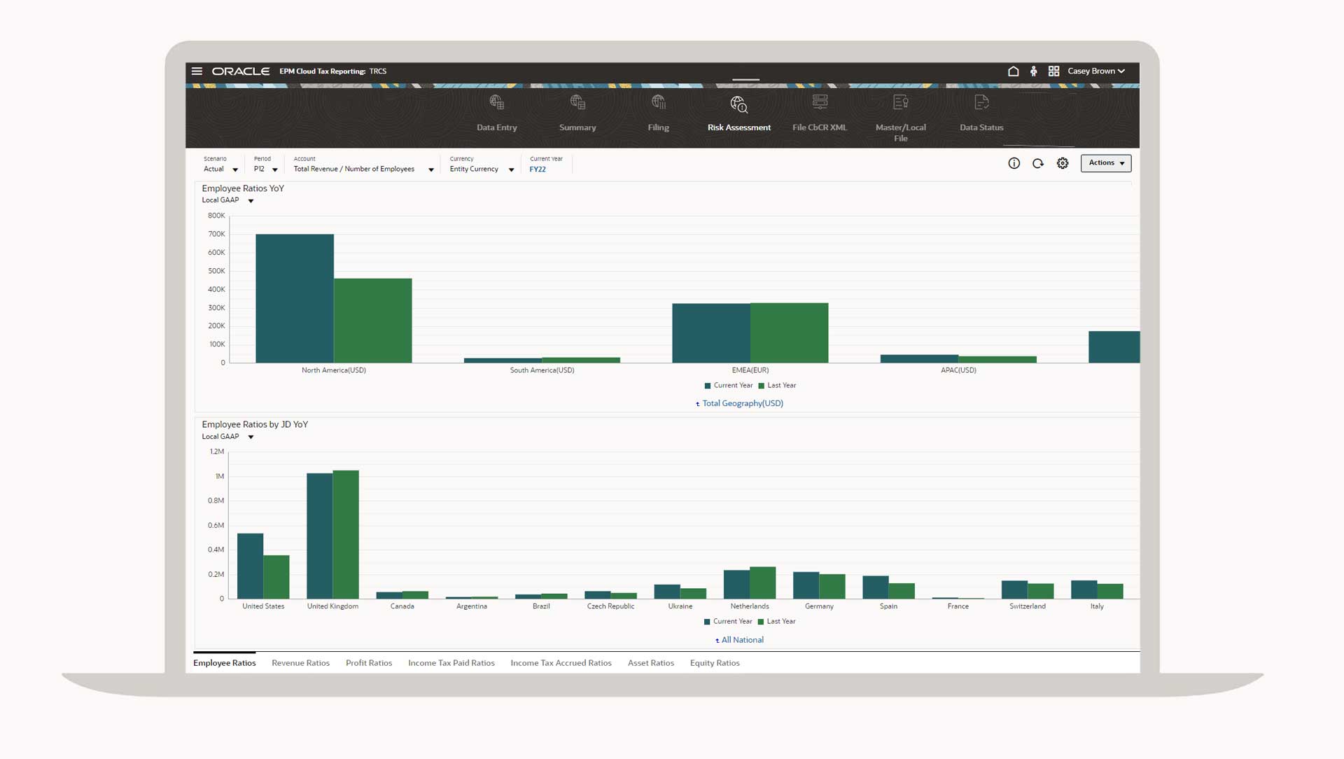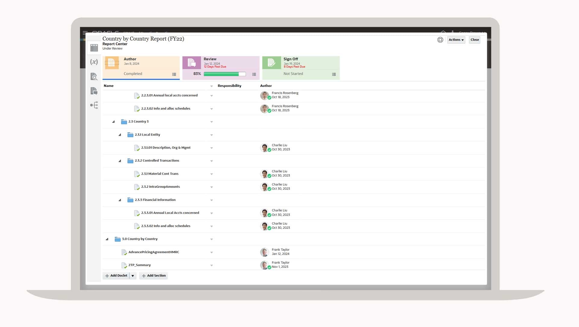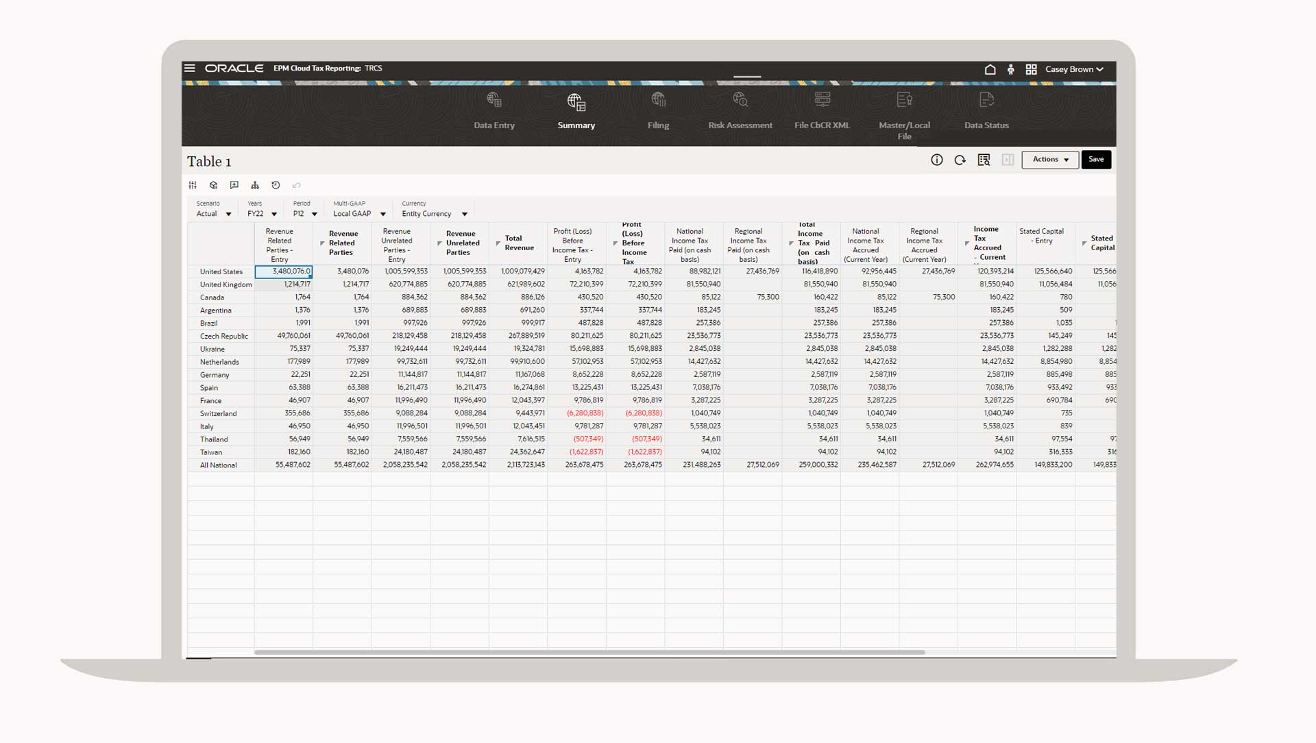税務レポートの詳細をOracle Cloud EPM Narrative Reportingに組み込むことで、世界中のユーザーとマスターファイルおよびローカル・ファイルでコラボレーションします。