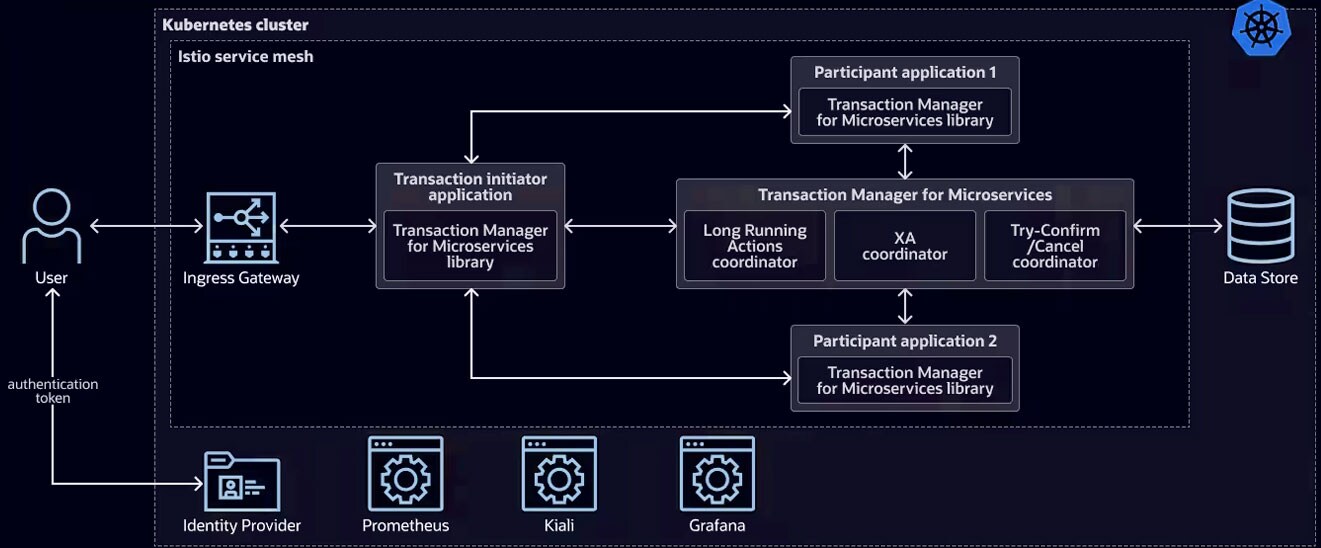 마이크로서비스 아키텍처의 인기가 높아짐에 따라 개발자는 일반적으로 각 마이크로서비스에 자체 데이터베이스 또는 기타 리소스가 있기 때문에 데이터 일관성과 관련된 문제가 발생하는 경우가 많습니다. MicroTx는 트랜잭션에 참여하는 다양한 데이터베이스의 상태에서 일관성을 유지하기 위한 트랜잭션 조정 마이크로서비스를 제공합니다. MicroTx는 XA, LRA(장기 실행 작업) 및 TCC(시도 확인/취소)와 같은 여러 분산 트랜잭션 프로토콜을 지원합니다. Java, node.js, C/C++ 및 PL/SQL과 같은 다중 언어 마이크로서비스 간에 분산 트랜잭션을 지원합니다. 이 LiveLab에서 개발자는 샘플 애플리케이션에 사용되는 다양한 마이크로서비스에서 데이터 일관성을 달성하는 방법을 배울 수 있습니다.