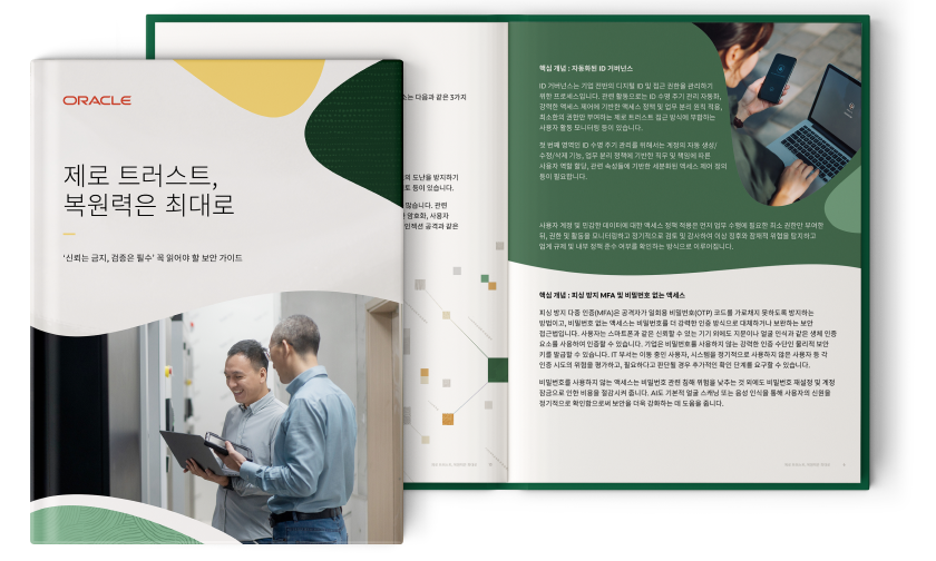 민감한 엔터프라이즈 정보, 제대로 보호하고 계신가요? 많은 IT 리더가 사이버 보안만큼은 절대 신뢰하지 않는 제로 트러스트 보안 채택을 통해 안심할 수 있는 보안 환경을 구축하고 있습니다. Oracle이 사이버 보안 위험을 최소화하는 데 필요한 주요 원칙, 무료로 사용할 수 있는 모델, 구현 모범 사례를 소개합니다.