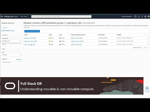 Oracle Cloud Infrastructure (OCI) Full Stack Disaster Recovery organiza la transición de recursos informáticos, bases de datos y aplicaciones entre regiones de OCI de todo el mundo con un solo clic. Los clientes pueden automatizar las acciones necesarias para recuperar uno o más sistemas de negocio sin rediseñar ni reorganizar la infraestructura, las bases de datos o las aplicaciones existentes, y sin necesidad de servidores especializados para la conversión o la gestión.