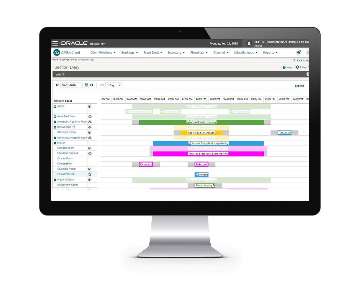 OPERA Sales and Event Management ofrece disponibilidad en tiempo real a las habitaciones y los espacios funcionales. Cuando se combina con la aplicación basada en la nube OPERA Cloud Property Management, proporciona una experiencia optimizada para ayudarlo a reservar de manera rápida y eficiente, lo que le brinda más tiempo para llevar a cabo sus actividades comerciales diarias.